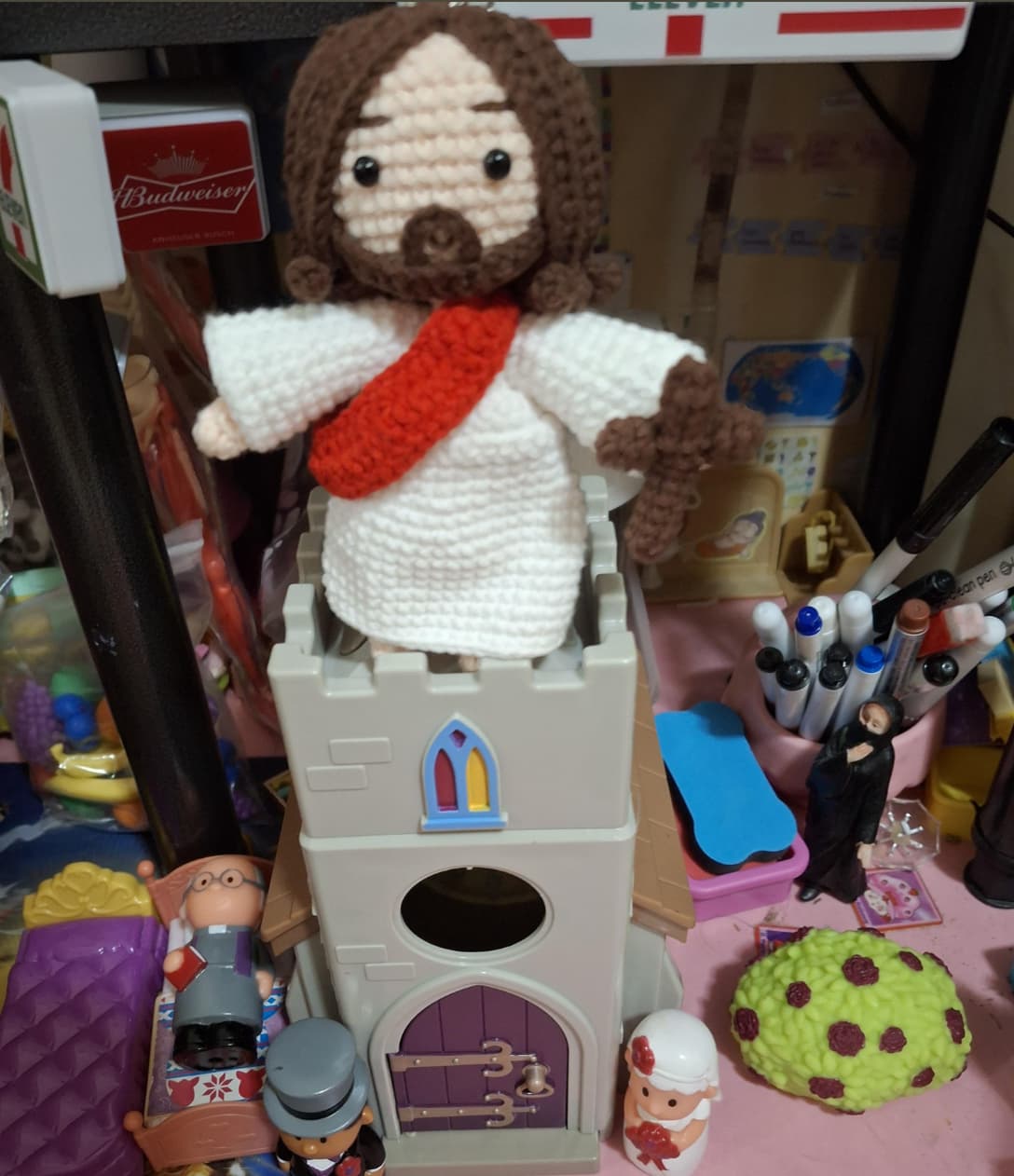 Something my in-person community knows about me that my online friends here at Uncommon Pursuit might not is that I am an avid crafter! I like to knit and crochet and dabble a little in sewing. Earlier this week, I was looking through one of my craft forums when I saw a particular photo that stopped me. Someone had crocheted a small Jesus doll complete with a robe, sash, and a tiny cross in his hand. The creator did a lovely job creating this figure and I was impressed by the craftsmanship. The comments were full of praise, with various people calling it cute, sweet, happy, and adorable.
